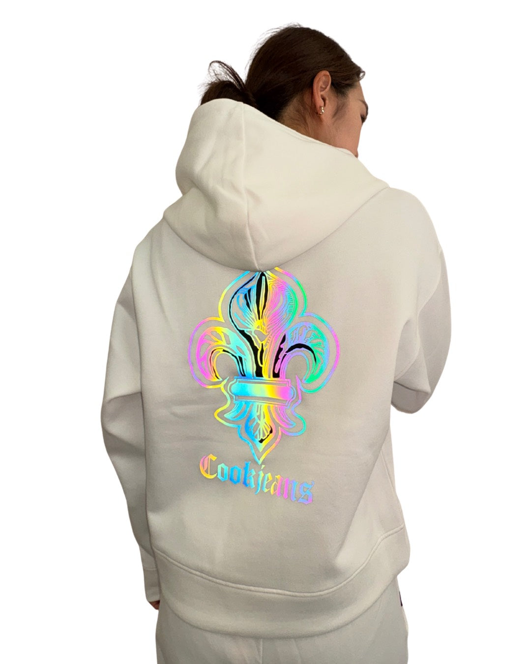 背面に施されたオーロラ加工のダガーが、光の加減で多彩な表情を見せる主役級の一着。綿75%・ポリエステル25%を配合した素材は、柔らかな肌触りと型崩れしにくい機能性を両立しています。程よいゆったりシルエットが、都会的でリラックス感のあるストリートスタイルを演出。前面はシンプルに仕上げているため、同素材のパンツとのセットアップはもちろん、多彩なボトムスと相性抜群です。デザイン性と実用性を兼ね備え、バックスタイルで個性を主張したい大人のカジュアルコーデに最適なパーカーです。
