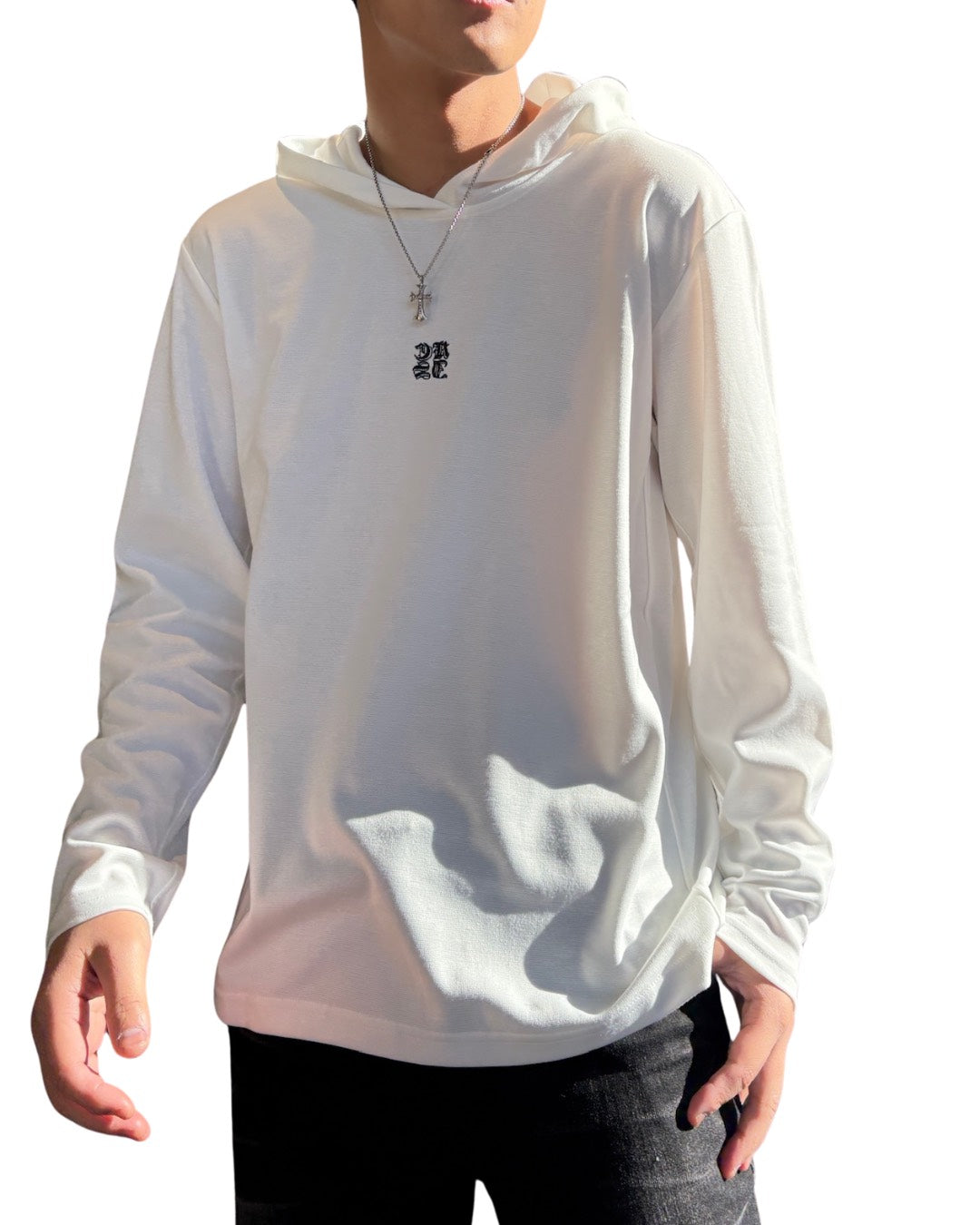 胸元にBOX型の当店オリジナル刺繍が入ったフードパーカー。胸元中央のロゴは小さめでシンプルになっているため、年齢問わず着ていただけて合わせやすいデザインに。1枚はもちろん、レイヤードも可能なサイズ感で、アウターのインナーとしてももたつかず着ていただけます。ベーシックな2色でご用意させていただきました。