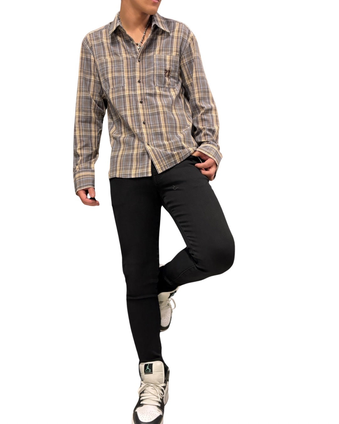 派手になりすぎず、地味でもない絶妙なバランスのチェックシャツです。さらっとした着心地で快適に過ごせる綿100%長袖シャツ。天然素材の滑らかな質感と肌触りが特徴です。胸元にはダブルポケットで左側にはオリジナルボックス刺繍入り。スナップボタンで開け閉めも楽に行えます。インナーを見せる着方でも閉めて1枚での着用でも◎様々なコーデをお楽しみください。